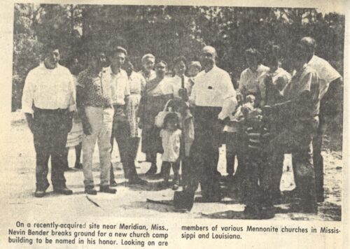 On November 20, 1965, a group of eight individuals gathered near Meridian, Mississippi to discuss developing a church camp. Those present included Nevin & Esther Bender, Glenn & Emma Myers, Titus & Ann Bender, Ann Zimmerly, and Mildred Bender. The handwritten minutes record their purpose: “to provide and promote Christian fellowship and recreation.”