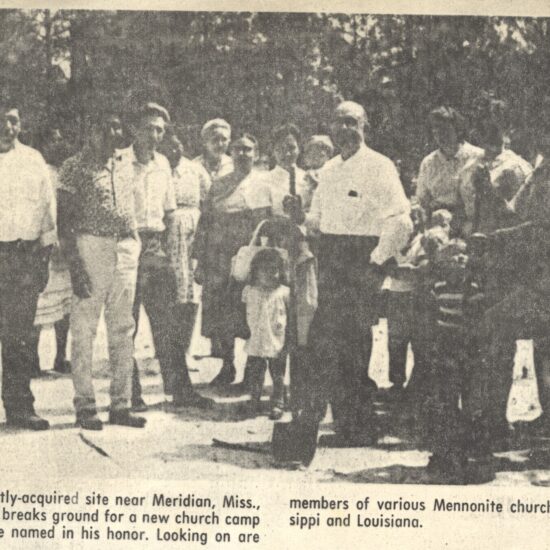 On November 20, 1965, a group of eight individuals gathered near Meridian, Mississippi to discuss developing a church camp. Those present included Nevin & Esther Bender, Glenn & Emma Myers, Titus & Ann Bender, Ann Zimmerly, and Mildred Bender. The handwritten minutes record their purpose: “to provide and promote Christian fellowship and recreation.”